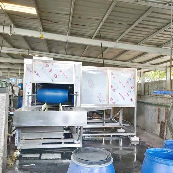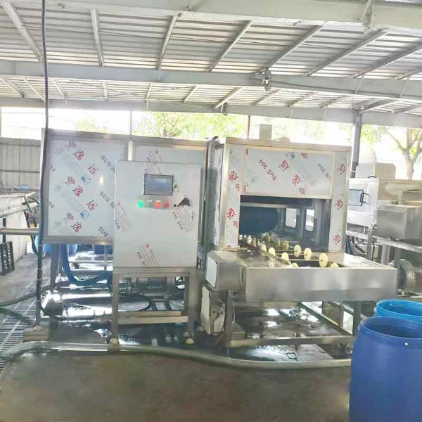 廣東德美精細(xì)化工集團(tuán)股份有限公司隧道式洗桶機(jī),桶蓋清洗機(jī)使用現(xiàn)場(chǎng)